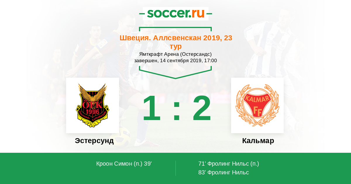 Протокол матча Эстерсунд против Кальмар