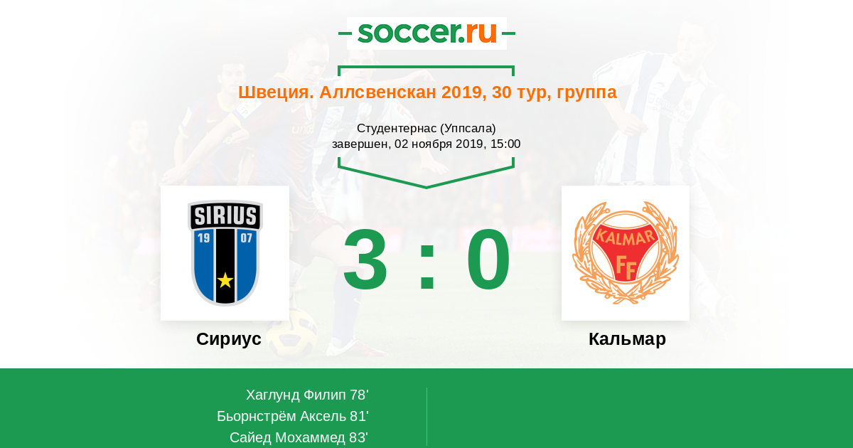 Протокол матча Сириус против Кальмар