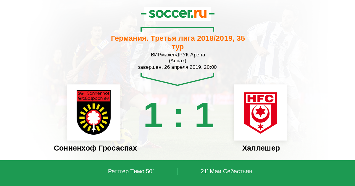Протокол матча Сонненхоф Гросаспах против Халлешер