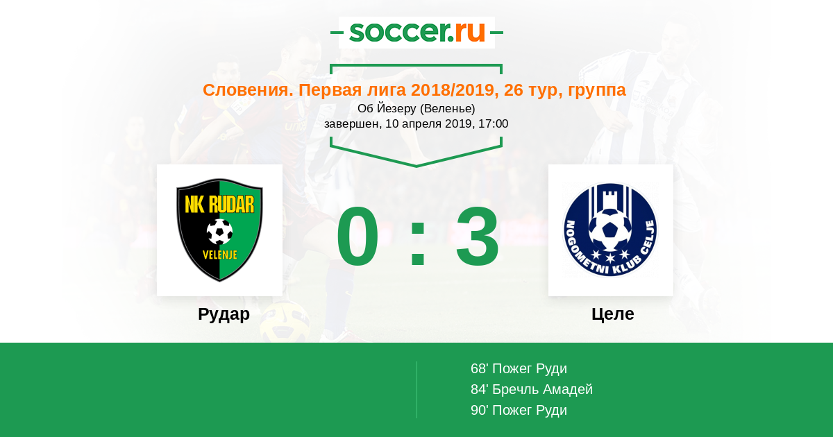 Протокол матча Рудар против Целе