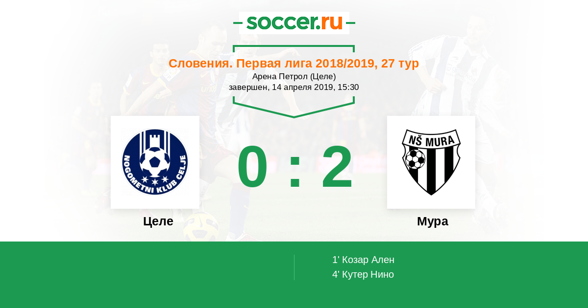 Протокол матча Целе против Мура
