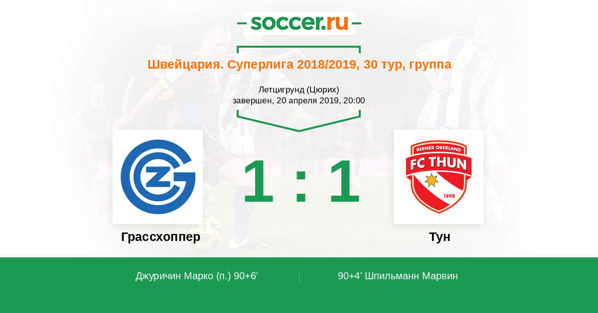 Протокол матча Грассхоппер против Тун