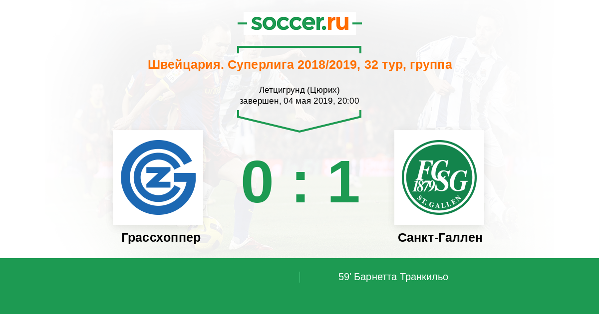 Протокол матча Грассхоппер против Санкт-Галлен