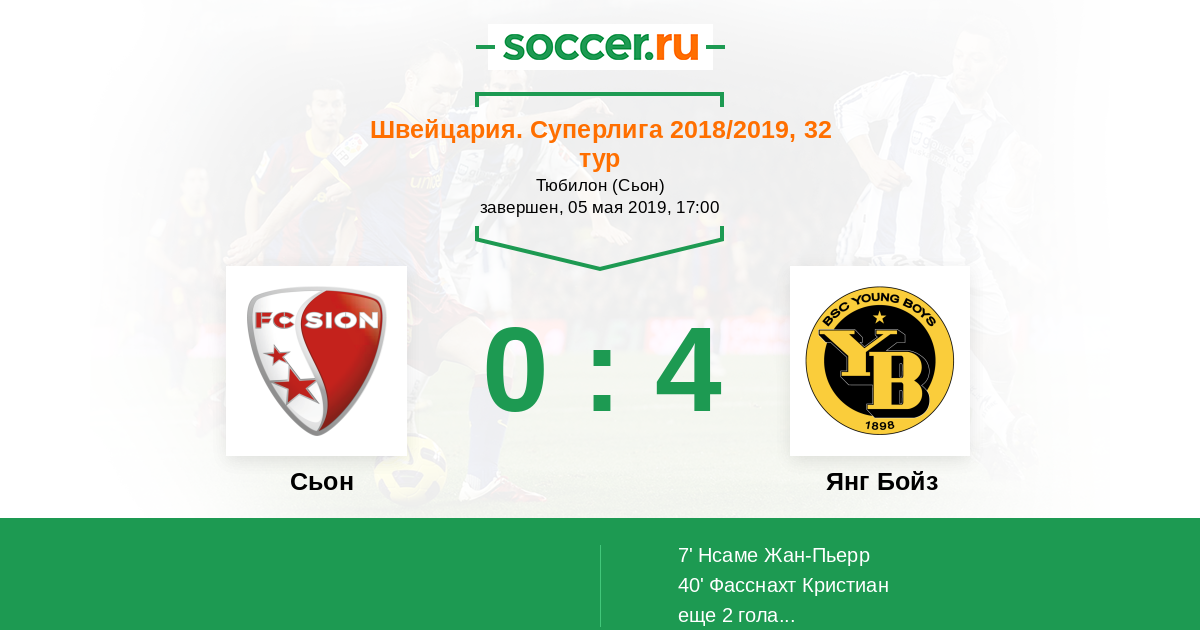 7' (0:1) Нсаме Жан-Пьерр (18) (Эбишер Мишель (20))