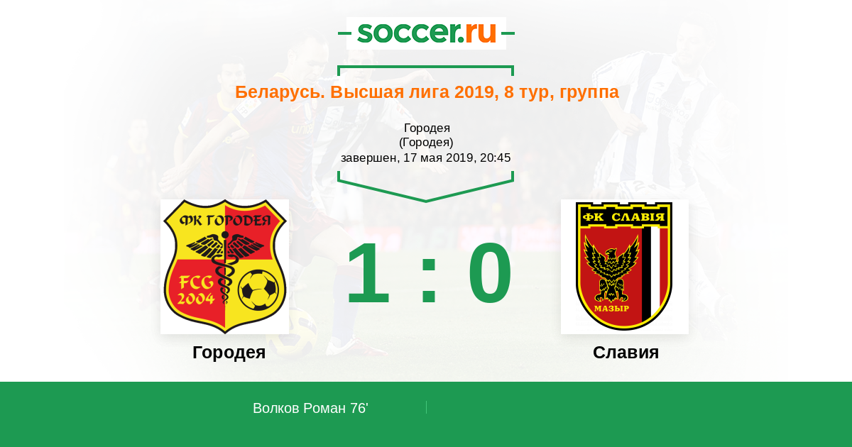 Протокол матча Городея против Славия