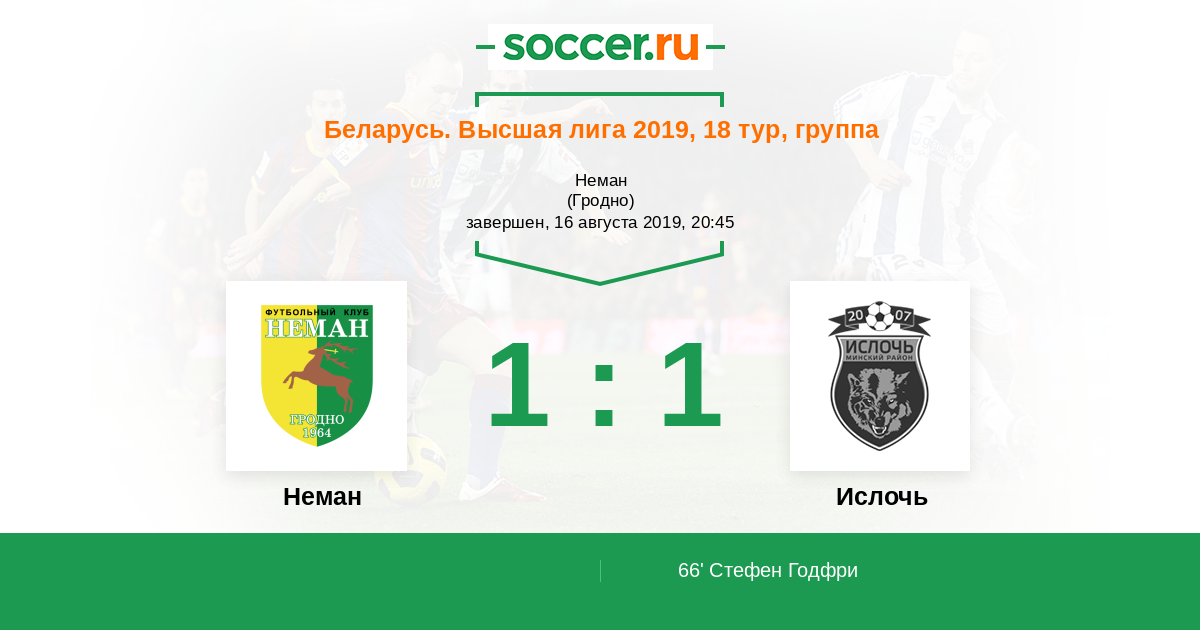 Протокол матча Неман против Ислочь