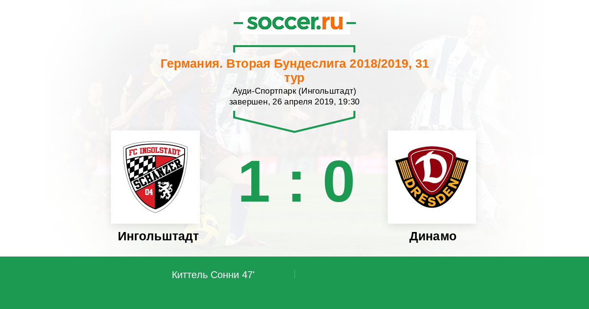 Протокол матча Ингольштадт против Динамо