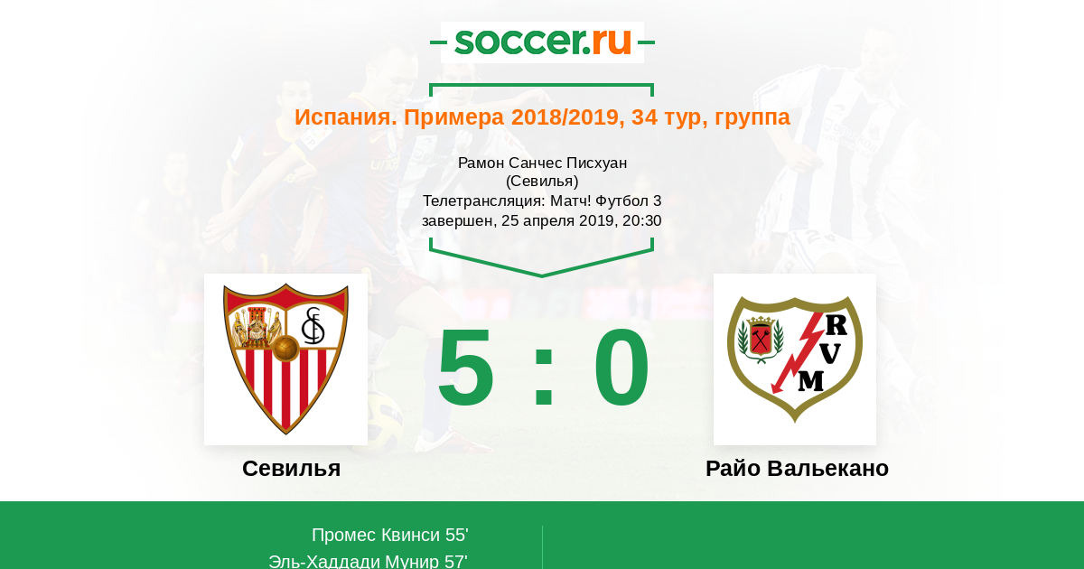 Протокол матча Севилья против Райо Вальекано