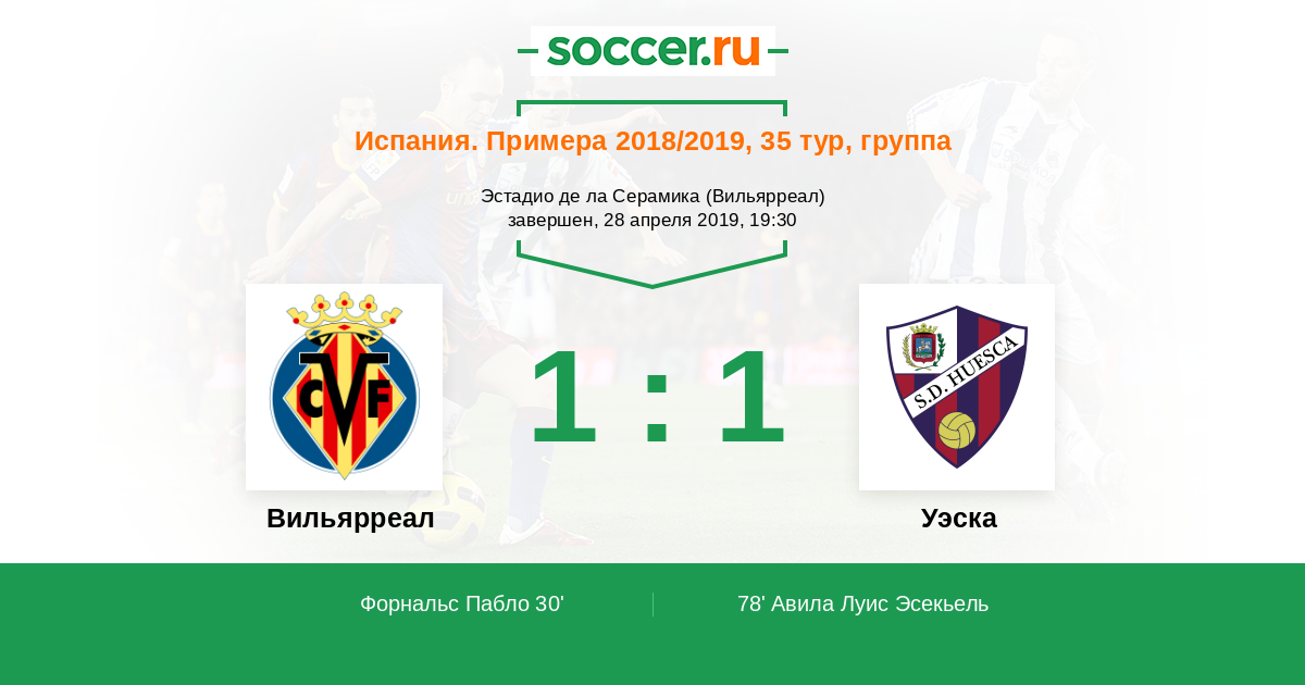 Протокол матча Вильярреал против Уэска