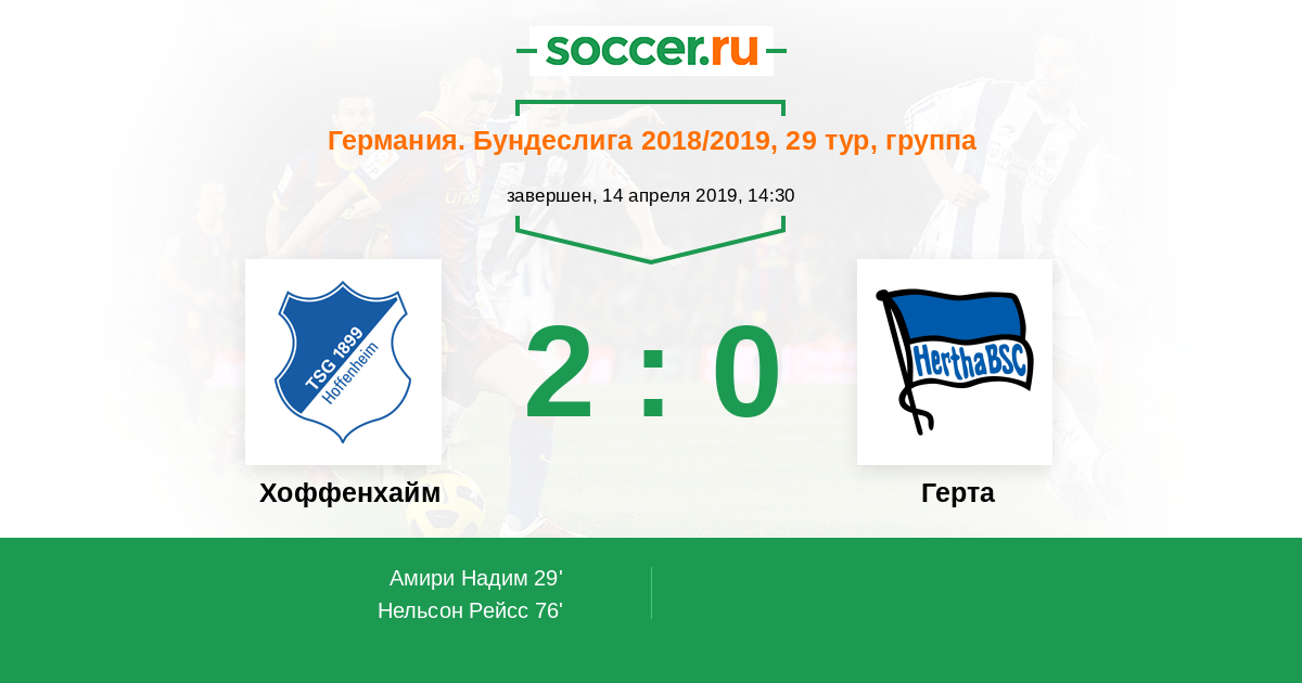 Протокол матча Хоффенхайм против Герта
