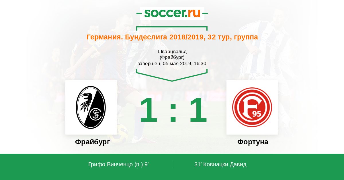 Протокол матча Фрайбург против Фортуна