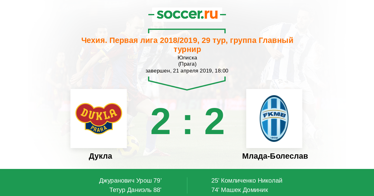 Протокол матча Дукла против Млада-Болеслав