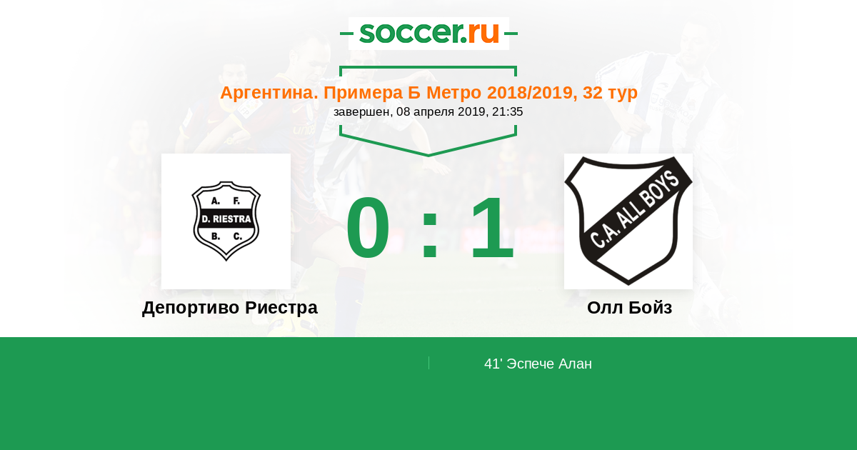 Протокол матча Депортиво Риестра против Олл Бойз