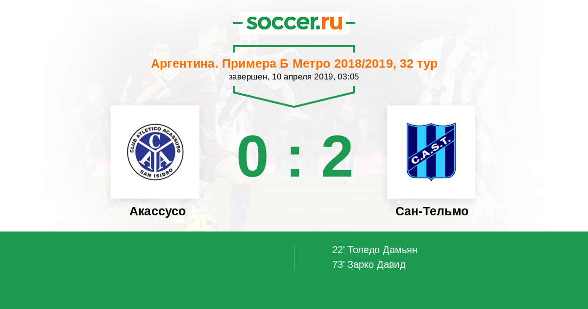 Протокол матча Акассусо против Сан-Тельмо