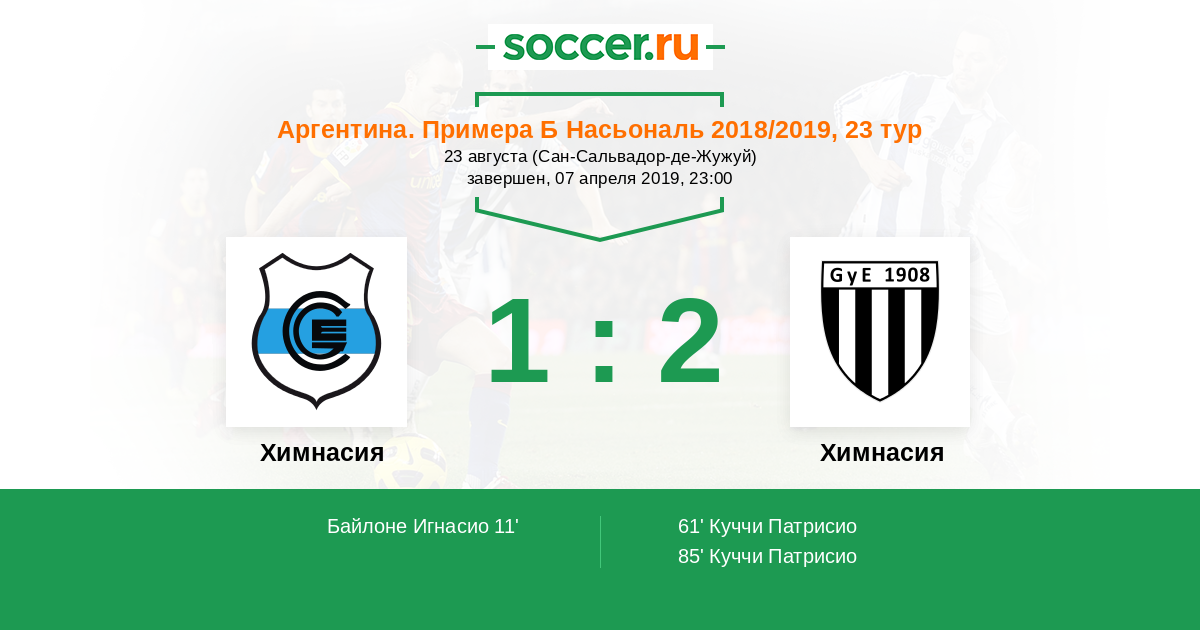 Протокол матча Химнасия Жужуй против Химнасия Мендоса