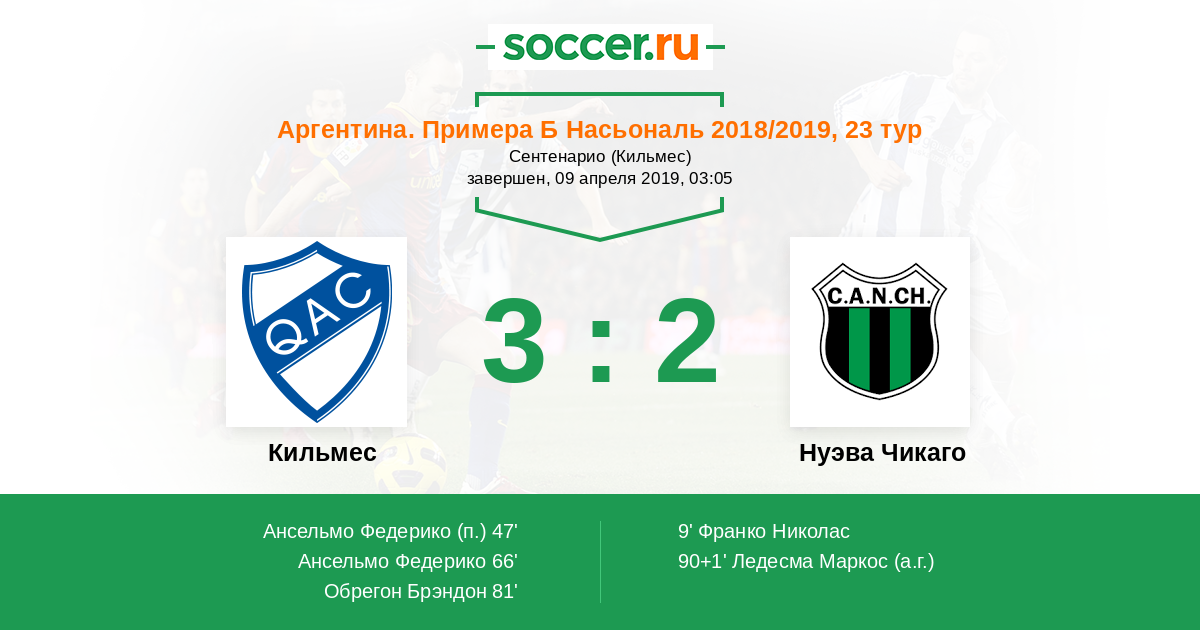 Протокол матча Кильмес против Нуэва Чикаго
