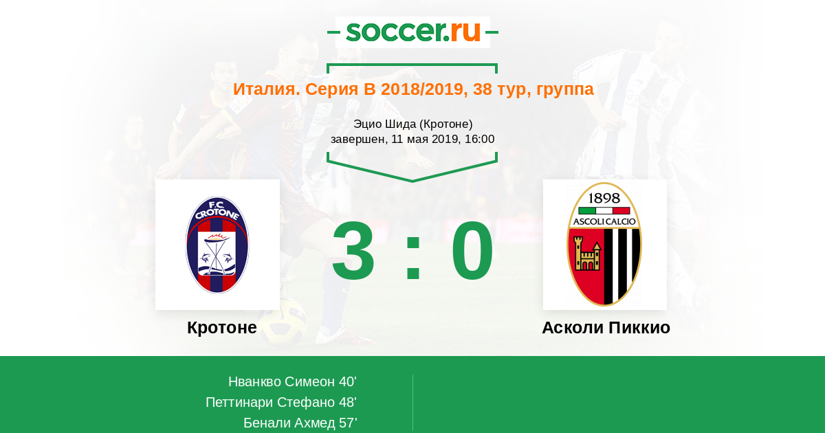 Протокол матча Кротоне против Асколи Пиккио