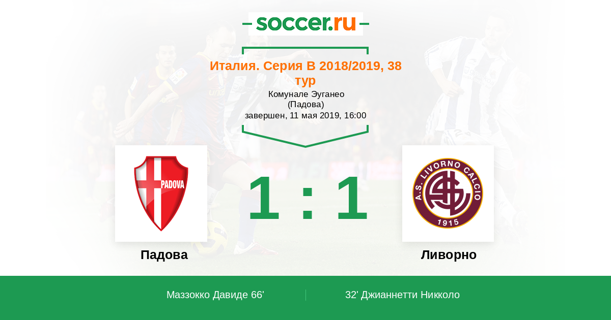 66' (1:1) Маззокко Давиде (18) (Чеккарони Пьетро (6))