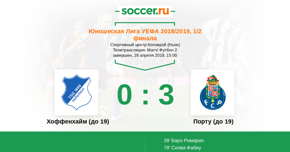 Протокол матча Хоффенхайм (до 19) против Порту (до 19)