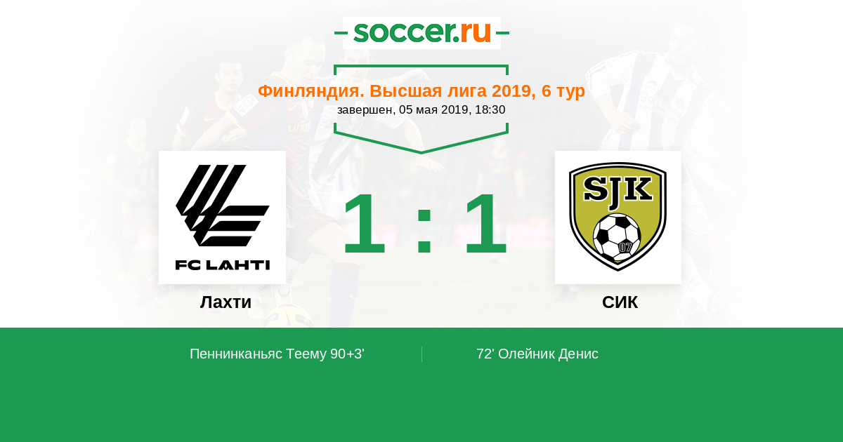 Протокол матча Лахти против СИК