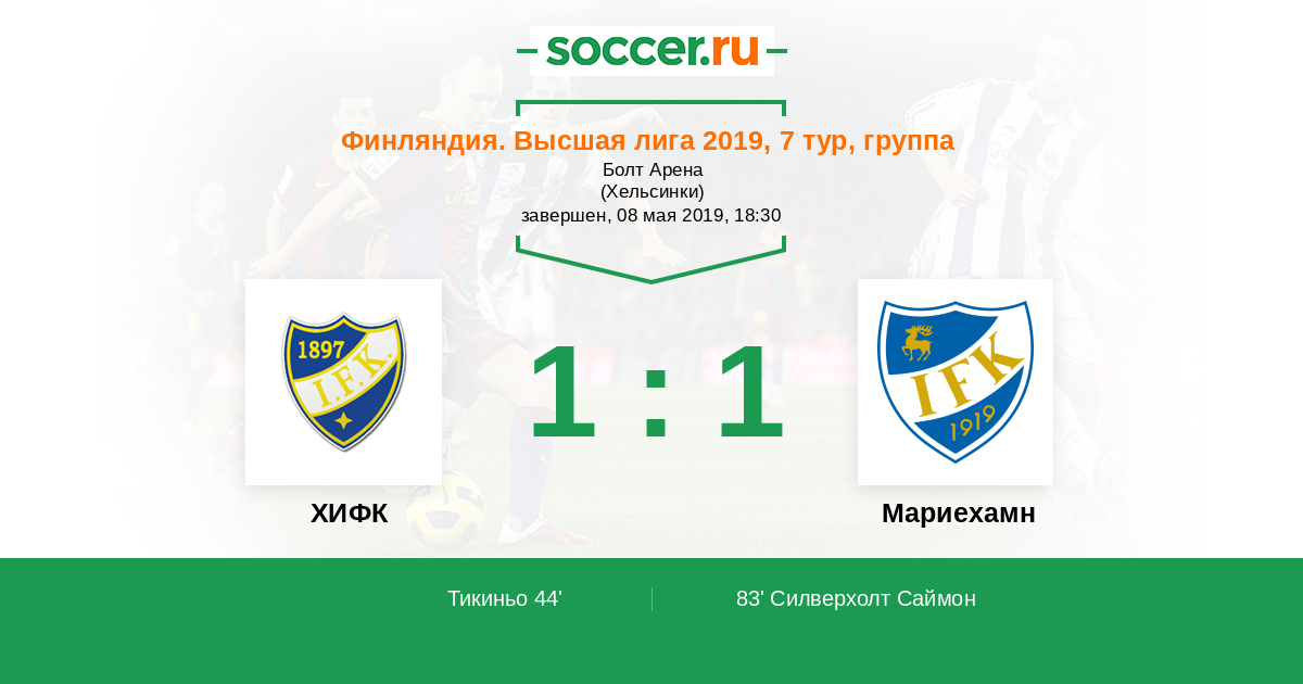 Протокол матча ХИФК против Мариехамн