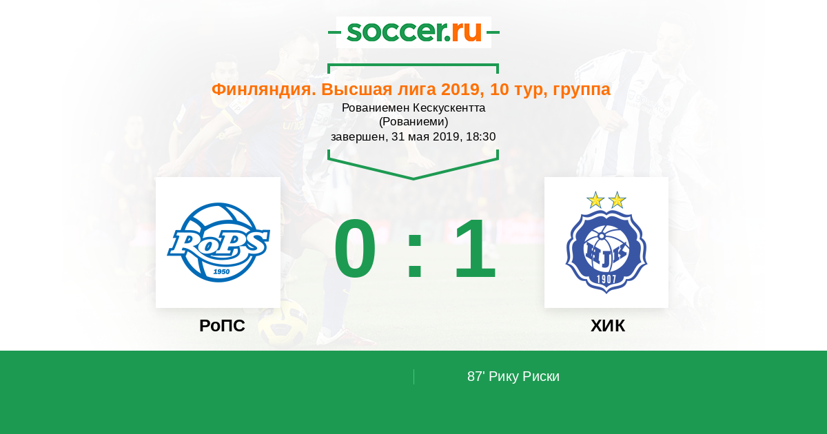 Протокол матча РоПС против ХИК