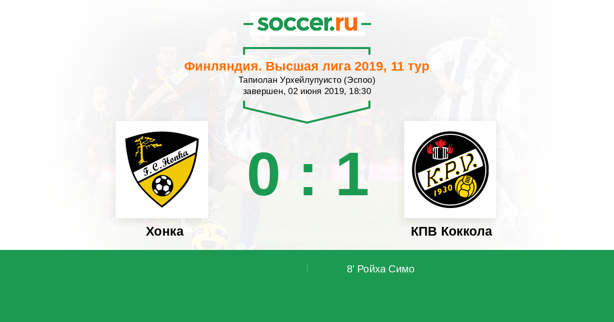 Протокол матча Хонка против КПВ Коккола