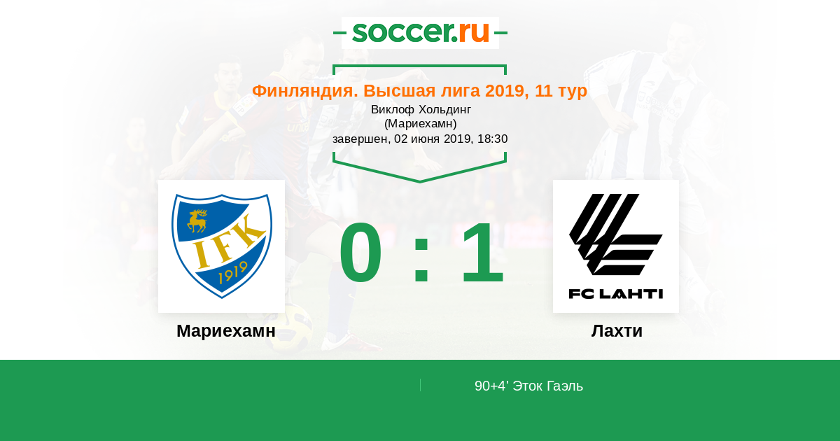 Протокол матча Мариехамн против Лахти