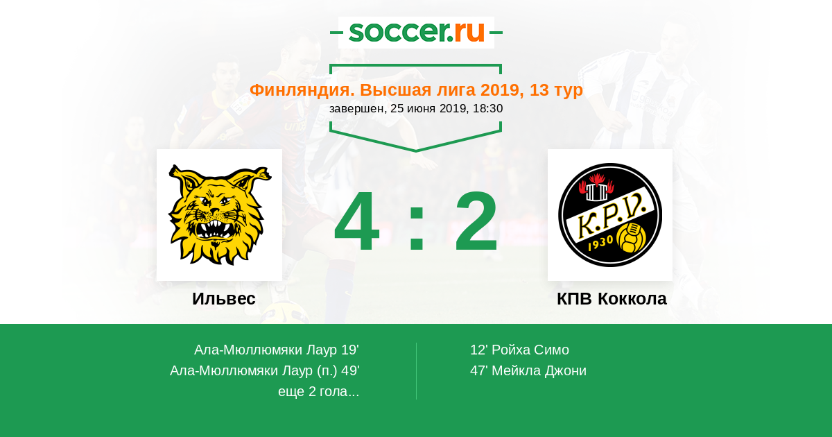 Протокол матча Ильвес против КПВ Коккола