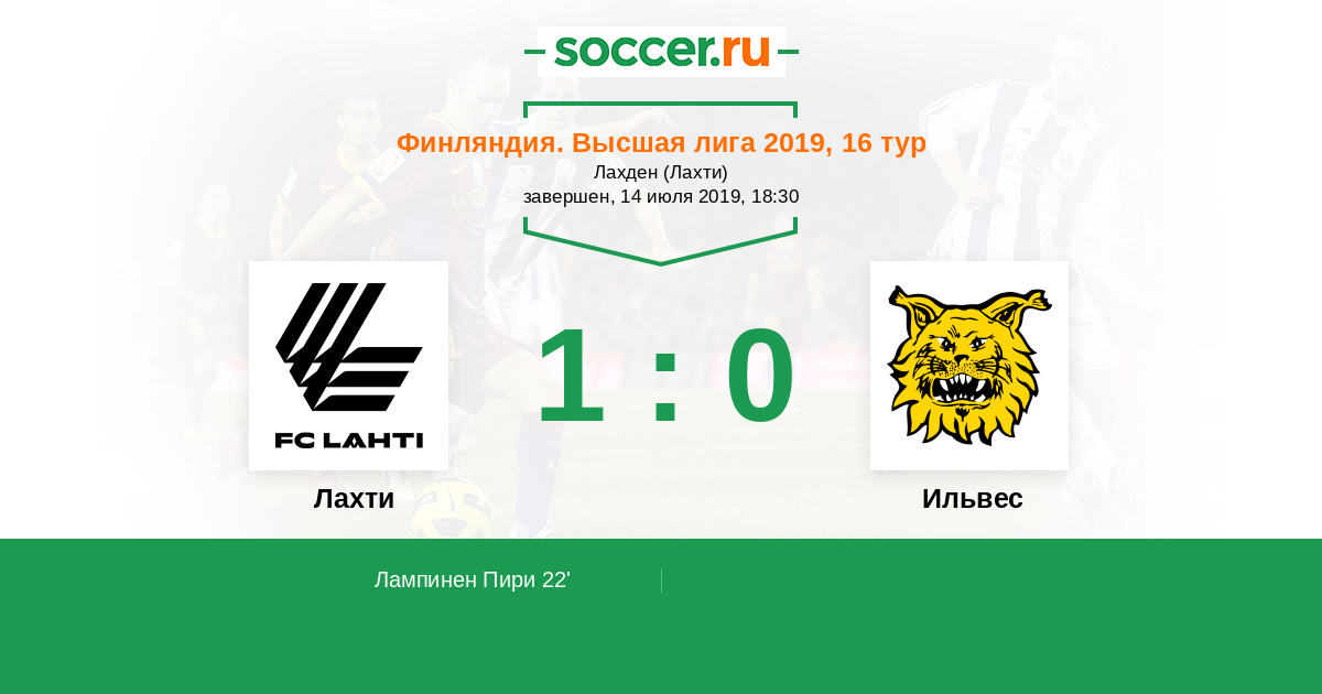 22' (1:0) Лампинен Пири (21) (J. Amione)