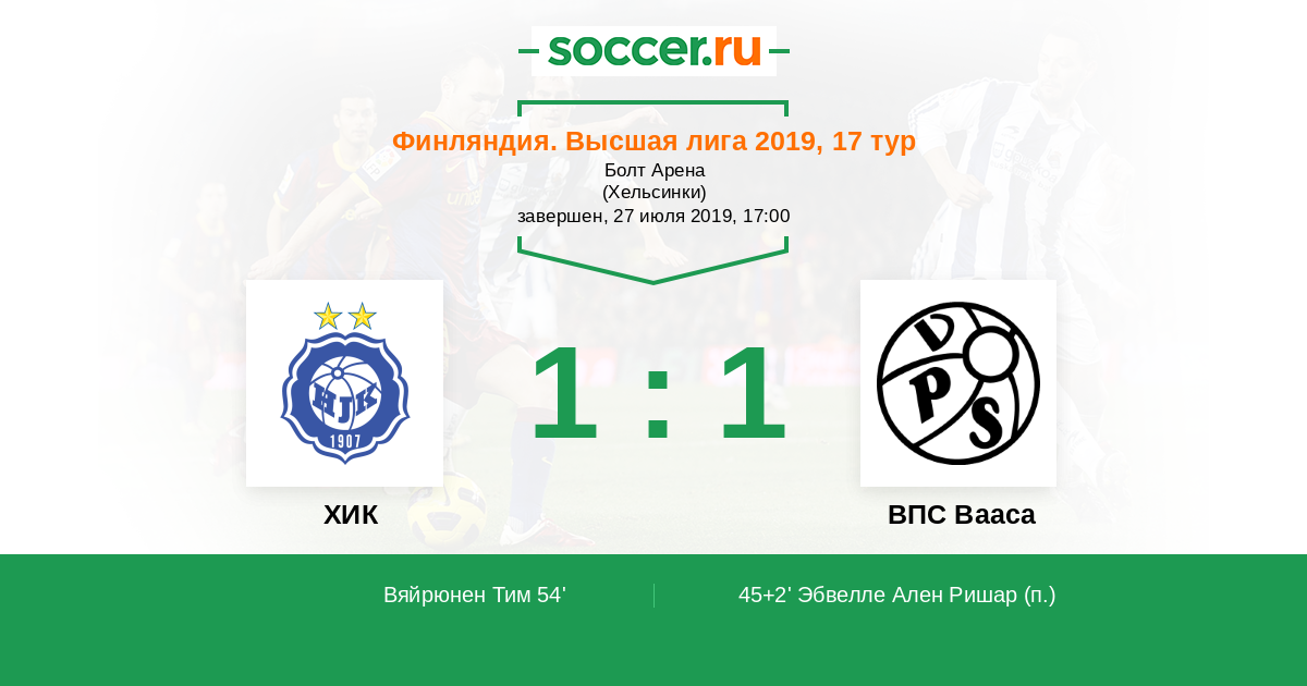54' (1:1) Вяйрюнен Тим (19) (E. Zeneli)