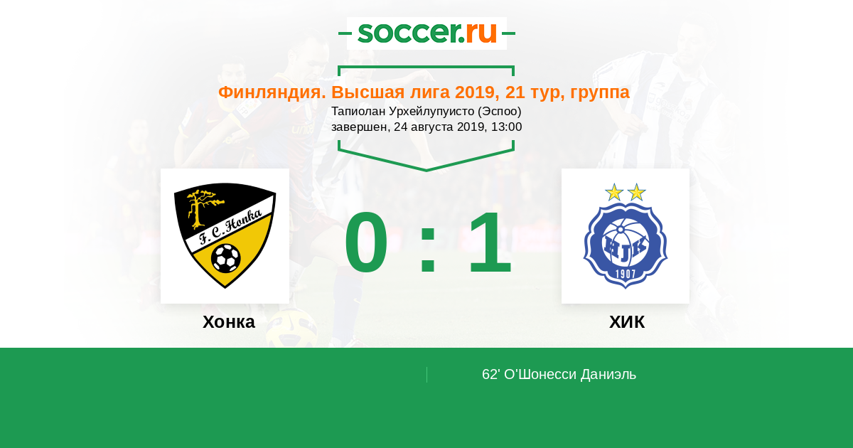 Протокол матча Хонка против ХИК