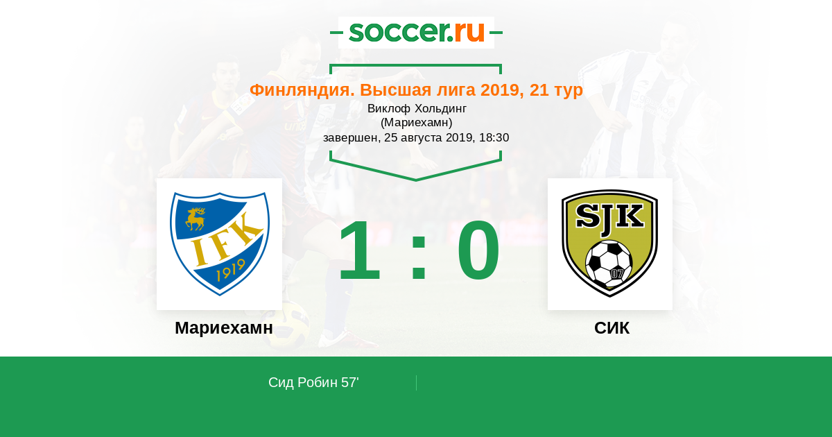 57' (1:0) Сид Робин (10) (Исакссон Китон (31))