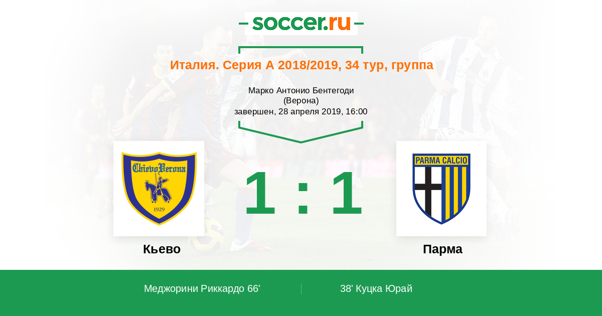 Протокол матча Кьево против Парма