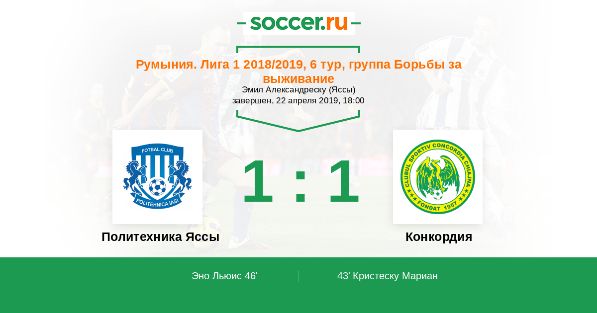 Протокол матча Политехника Яссы против Конкордия