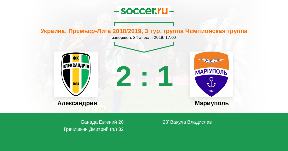 Протокол матча Александрия против Мариуполь