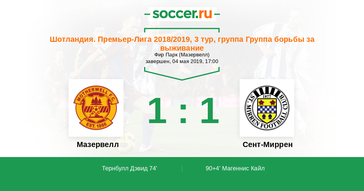 Протокол матча Мазервелл против Сент-Миррен