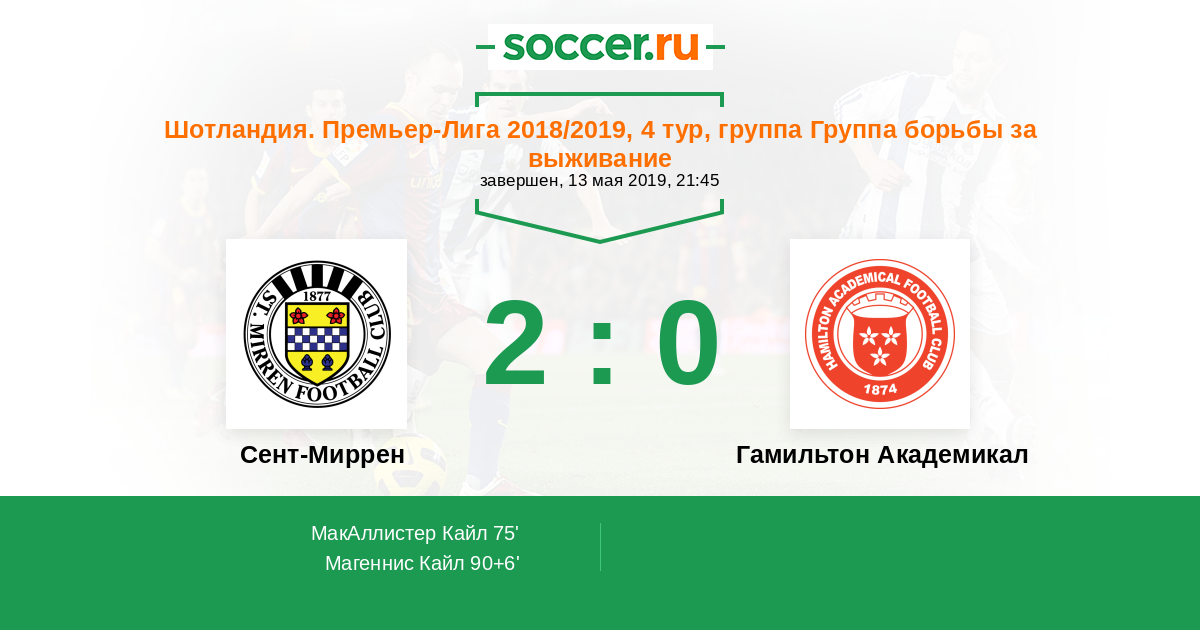 Протокол матча Сент-Миррен против Гамильтон Академикал