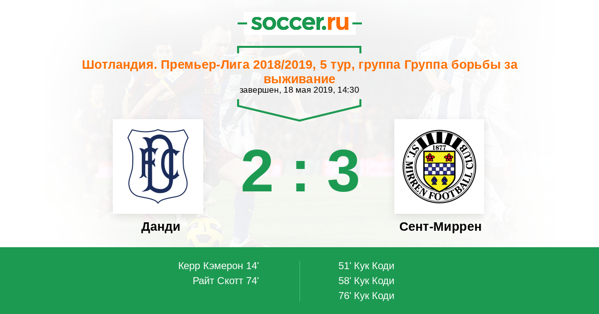51' (1:1) Кук Коди (20) (Пол МакГинн (2))
