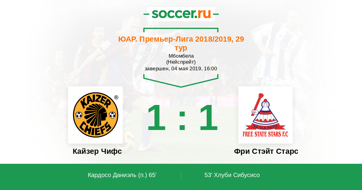 Протокол матча Кайзер Чифс против Фри Стэйт Старс