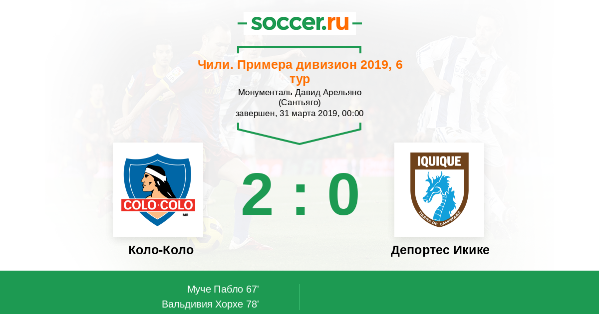 Протокол матча Коло-Коло против Депортес Икике