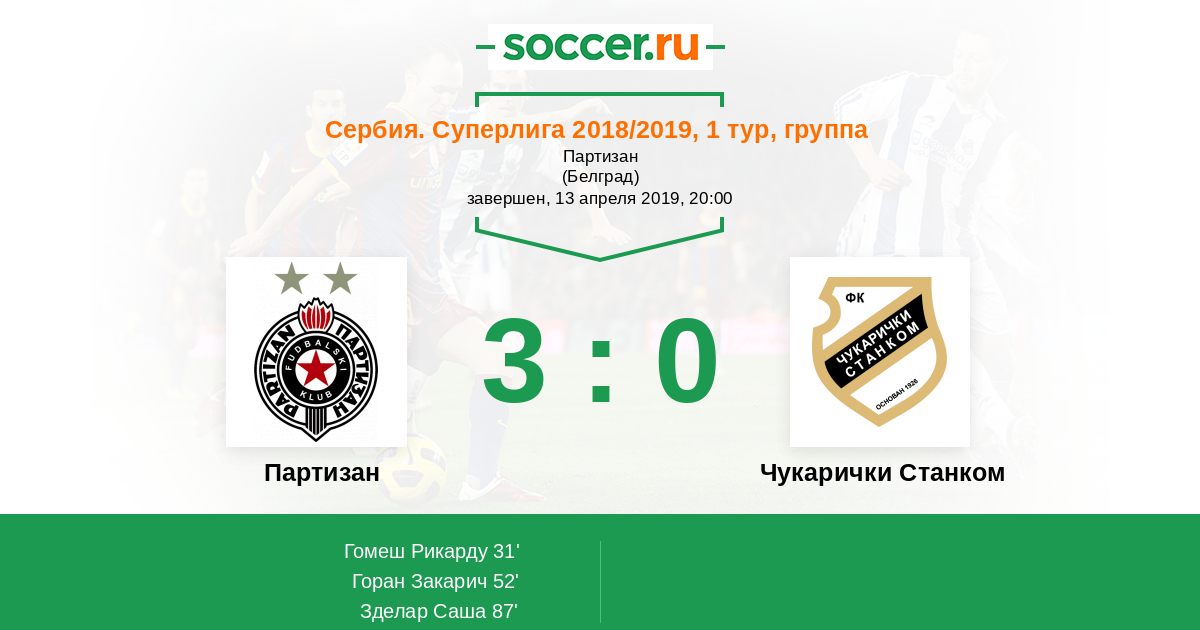 Протокол матча Партизан против Чукарички Станком