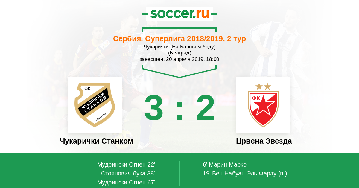 Протокол матча Чукарички Станком против Црвена Звезда