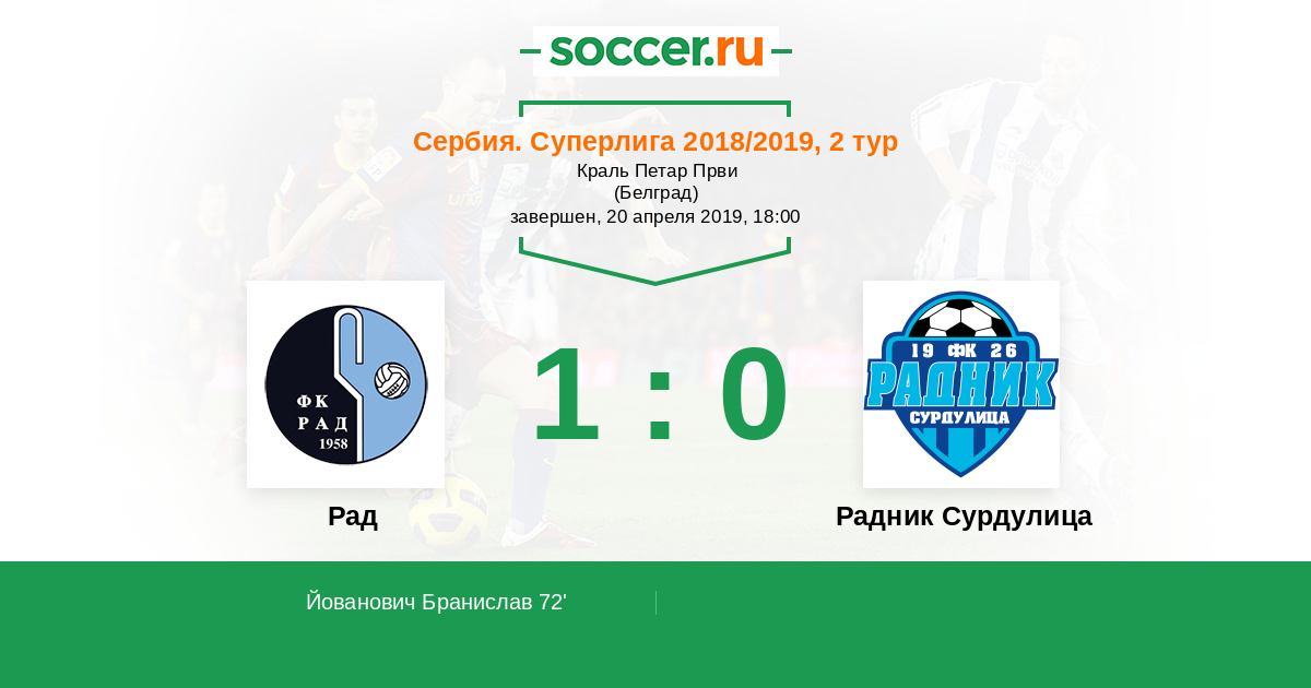 Протокол матча Рад против Радник Сурдулица