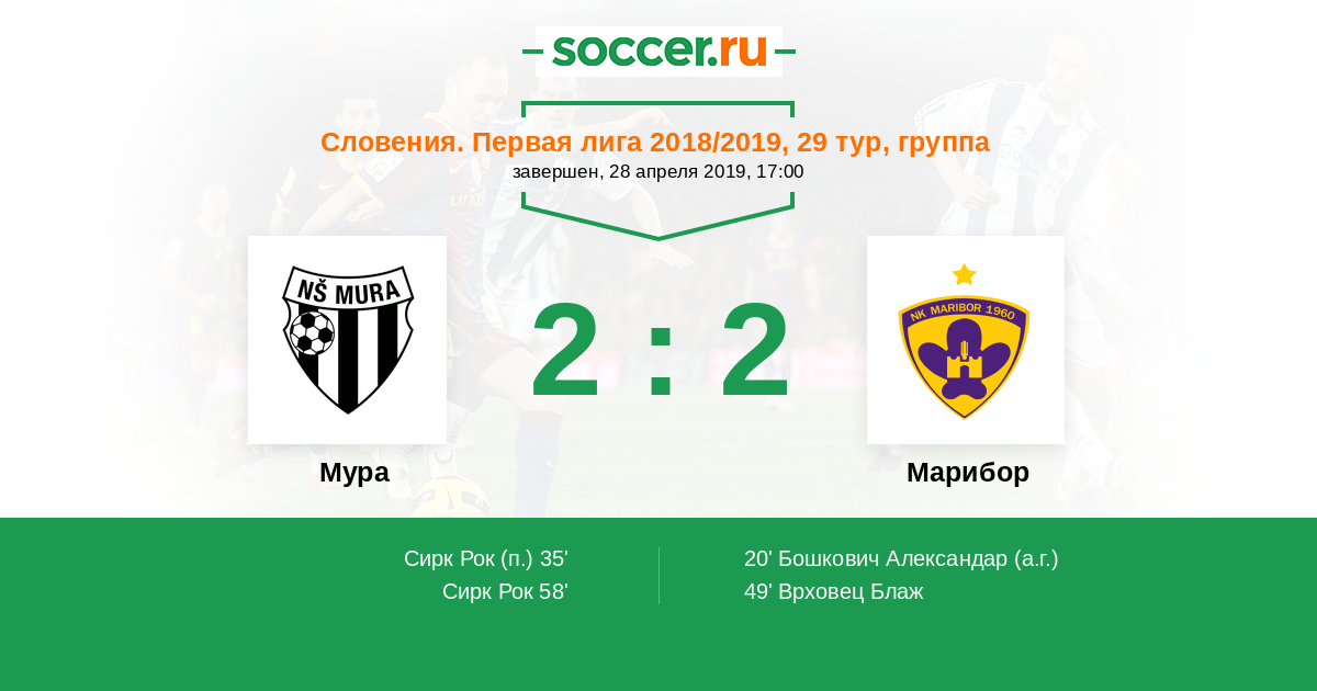 Протокол матча Мура против Марибор