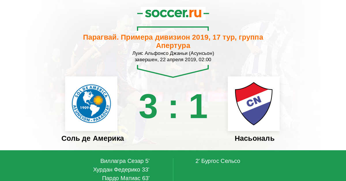 2' (0:1) Бургос Сельсо (32) (Хуан Виейра (29))
