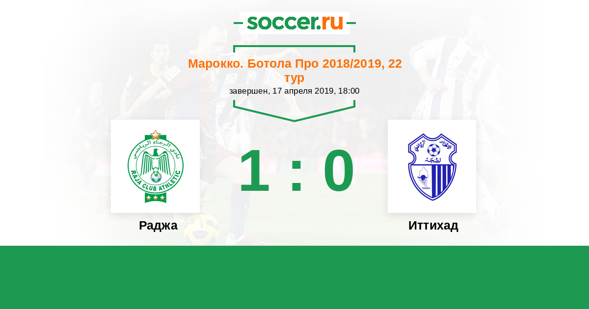 Марокко. Ботола Про 01.10.2017 ИР Анже Логотип футбольный клуб ИР Анже (Танжер) 1:1 Логотип футбольный клуб Раджа (Касабланка) Раджа