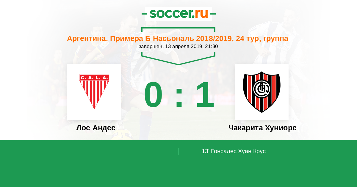 Протокол матча Лос Андес против Чакарита Хуниорс