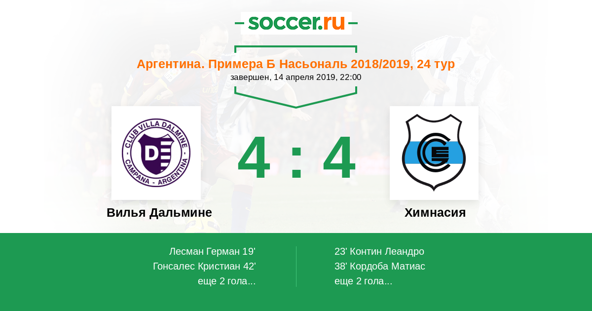 Протокол матча Вилья Дальмине против Химнасия