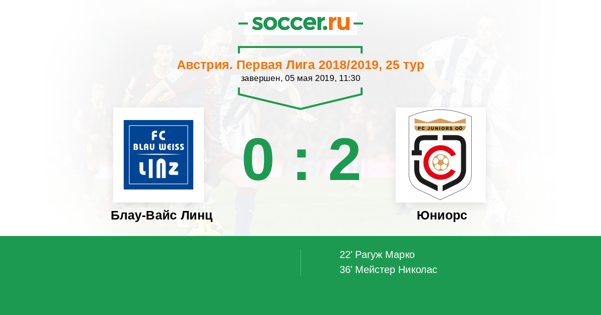 Протокол матча Блау-Вайс Линц против Юниорс
